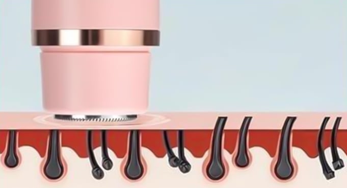 Geeignet für empfindlichere Bereiche. Entfernt effektiv kleine Haare. (Gesicht)
