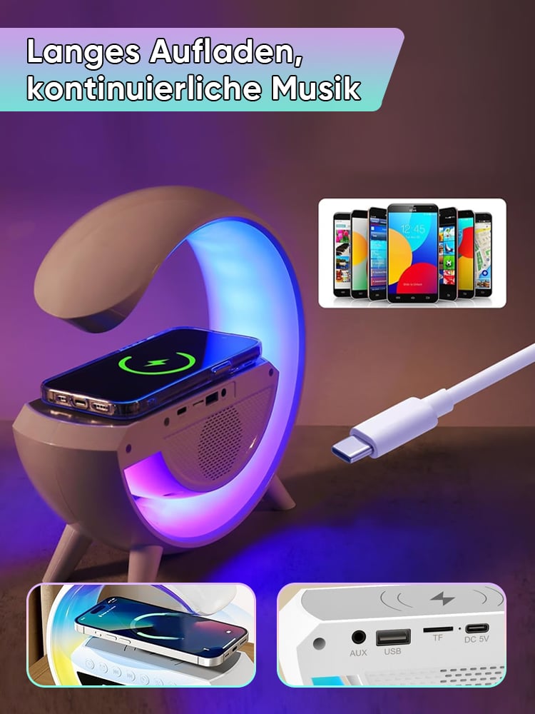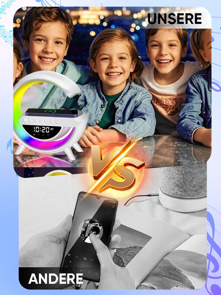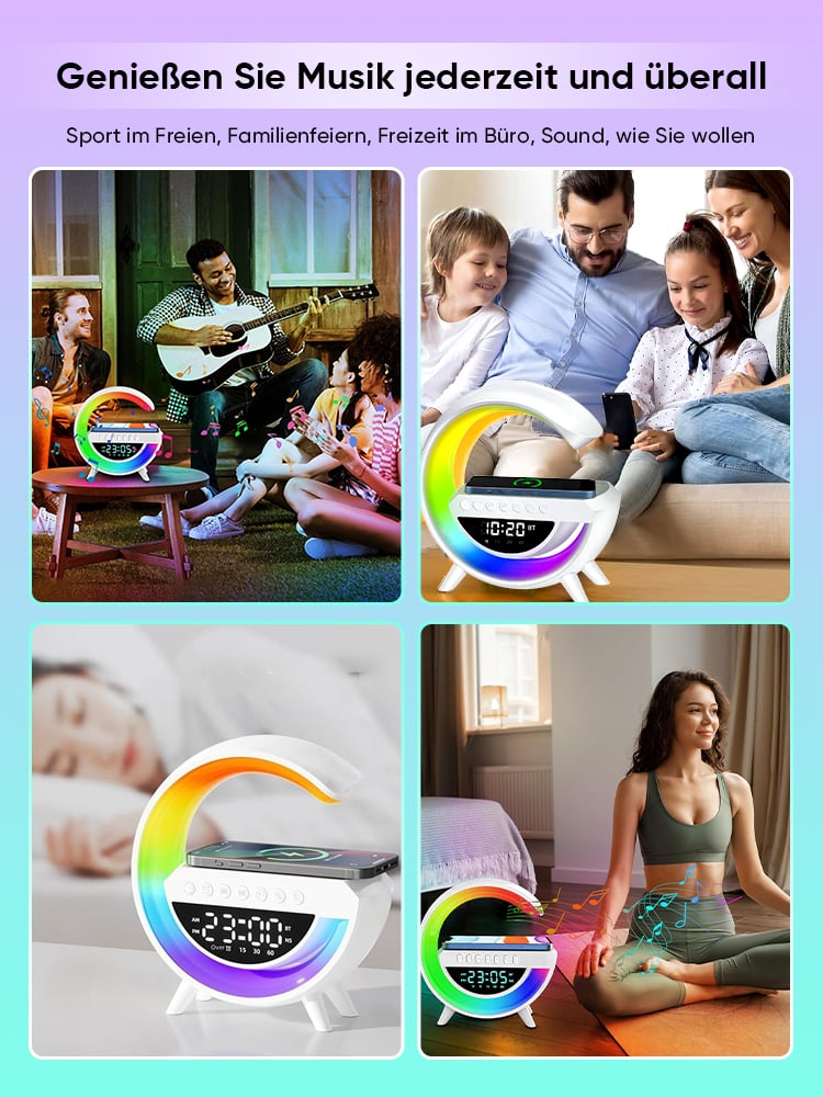 Sie können Ton, Lautstärke, Lichtfarbe und Helligkeit über die APP anpassen, um gesunde Schlaf- und Aufwachvorgänge zu personalisieren. Der Ton des Schlummeralarms ist sanft und friedlich und hilft Ihrem Körper, allmählich aufzuwachen.
