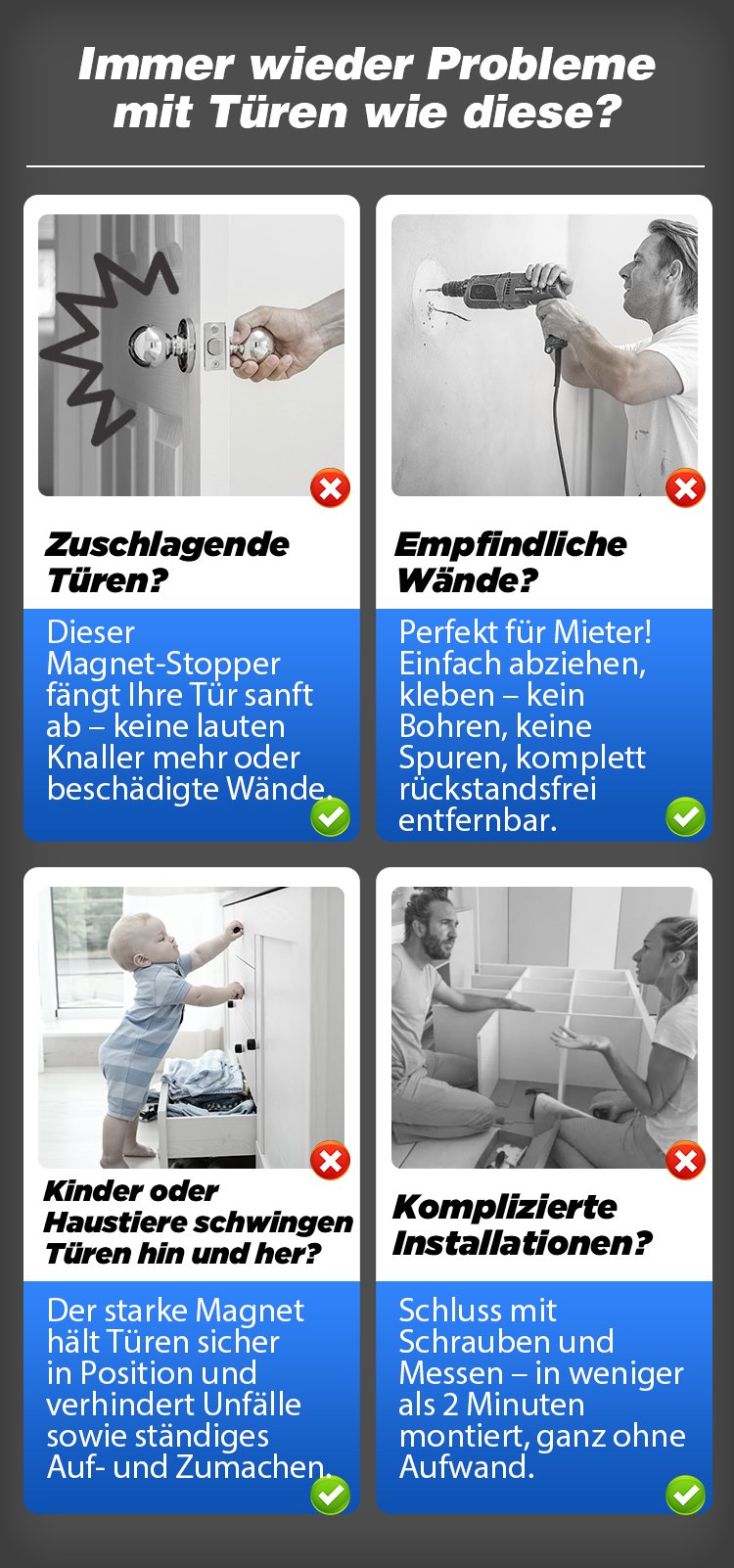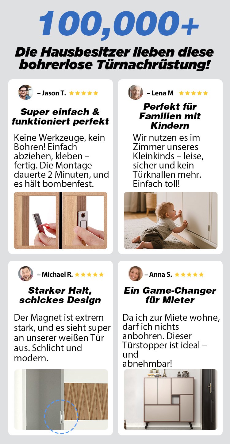 Ich bin sehr zufrieden mit diesem magnetischen Türschließer! Er ist leise und sanft beim Schließen, kein lästiges Zuschlagen oder plötzliches Knallen stört mehr den Frieden in meinem Haus.
