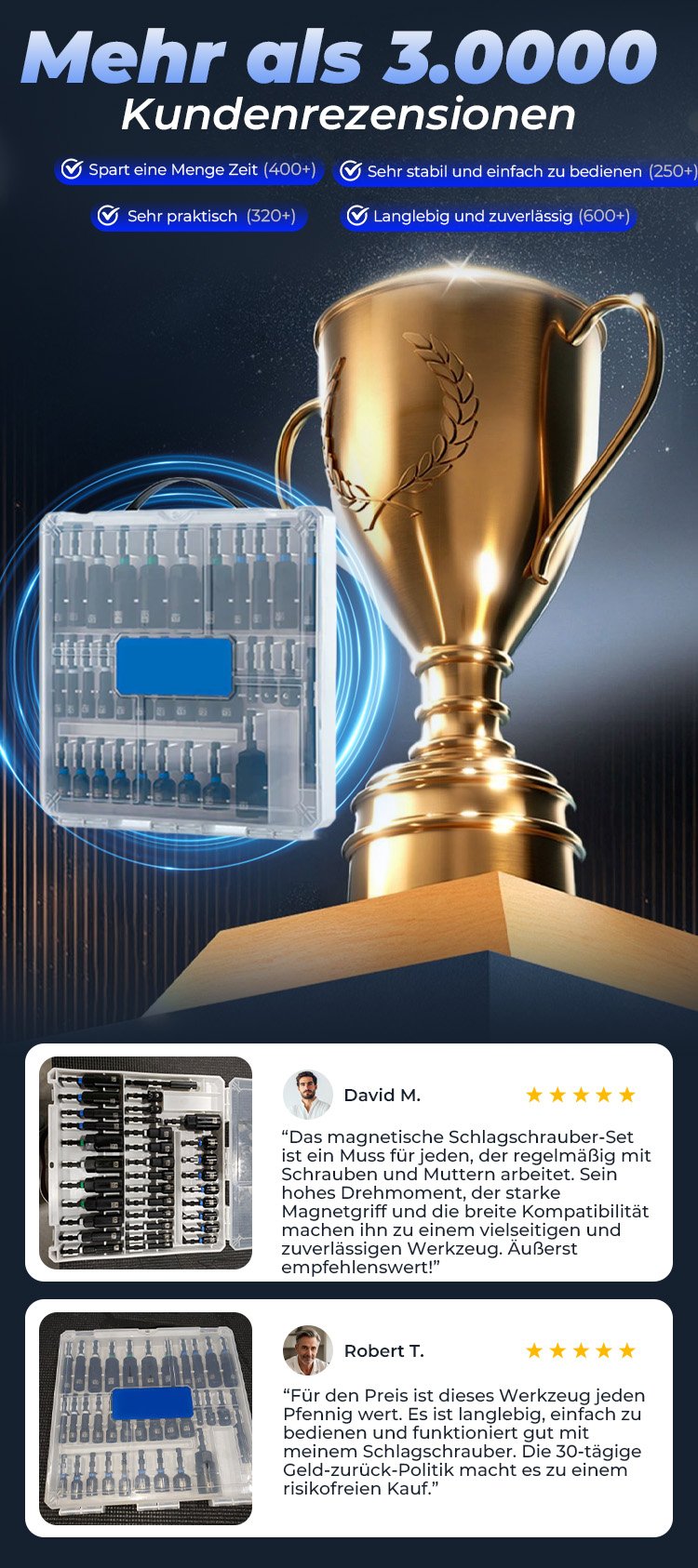 Wirklich gute Qualität Satz für meine Bohrmaschine und Schlagschrauber! Ich bin immer verlieren diese so mit einem schönen Tragekoffer für mich war entscheidend!