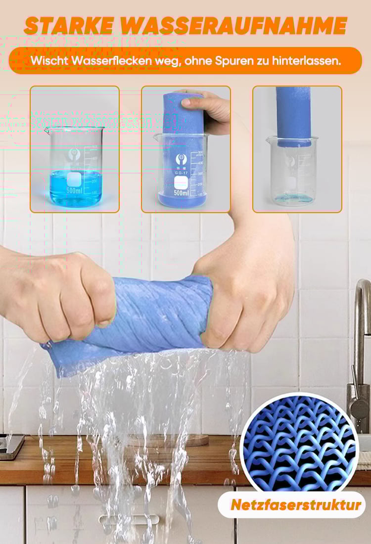Ob Tischwischen oder Geschirrspülen, dieses Tuch bewältigt alles mühelos. Super starke Wasseraufnahme!