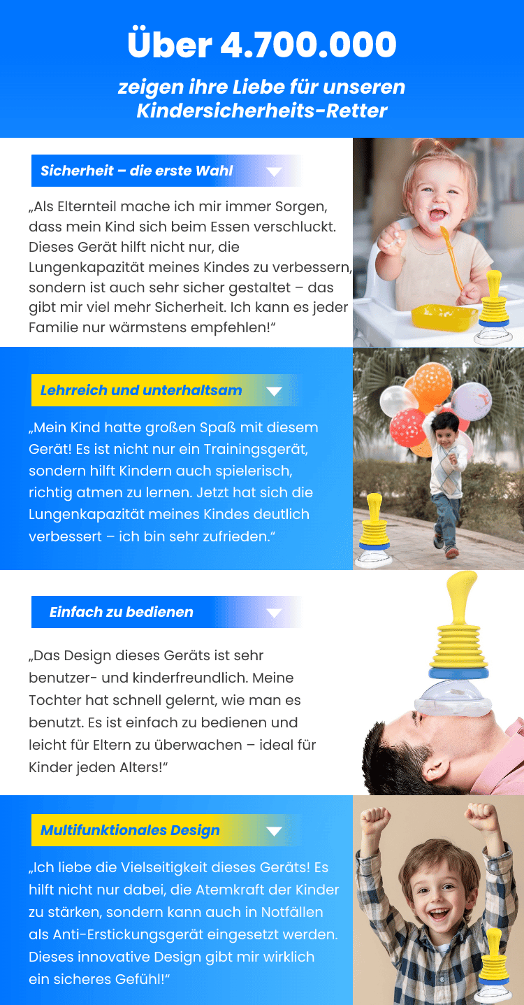 Geeignet für alle, die ihre Lungenkapazität und Atmung verbessern möchten, sowie für Familien, die mit potenziellen Erstickungsgefahren bei Kindern umgehen müssen.