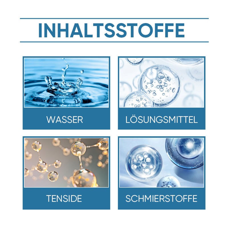 Hauptbestandteile: Wasser, Lösungsmittel, Tensid, Schmiermittel