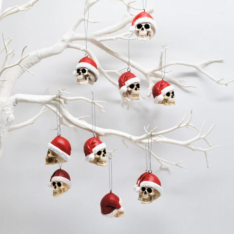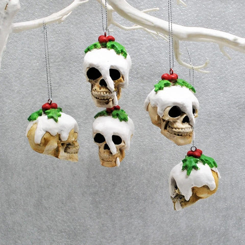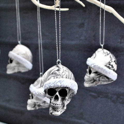 ESSENTIALS FÜR DEN URLAUB - Diese hochdetaillierten Feiertagsschädel-Ornamente sind perfekte Christbaumschmuck für Ihr Ferienhaus oder Weihnachtsgeschenke für Liebhaber gotischer Dekorationen.